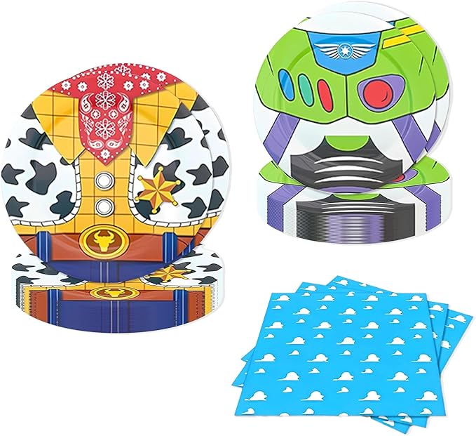 Cartoon Blue Sky White Clouds Plates Napkins Total 40Pcs Serve 10 Toy Inspired Story Kids Birthday Party Boy Baby Shower Tableware Set Clouds Sky Dinner Plates Dessert Plates Napkins Supplies